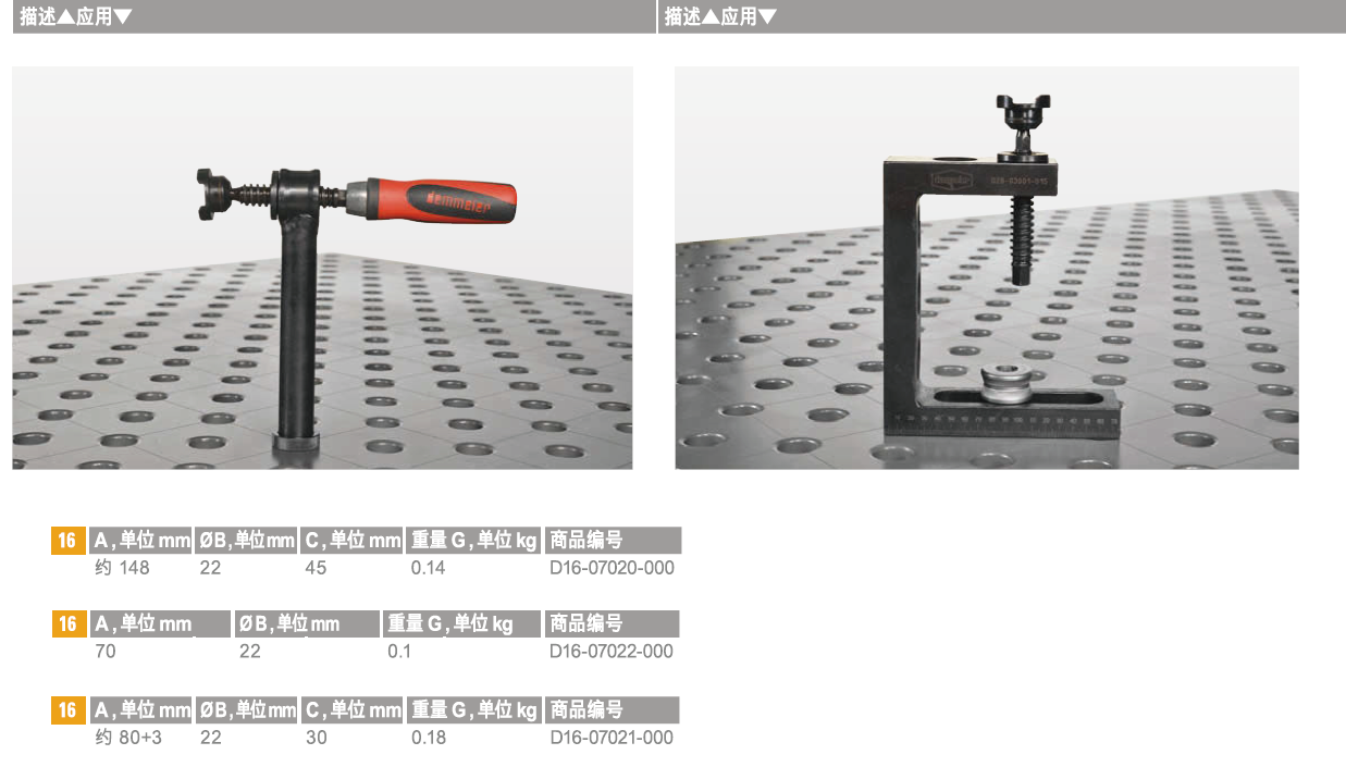 螺旋夹紧器45°,带螺旋手柄 螺旋夹紧器45°,带快速手柄 螺旋夹紧器45°,带短螺杆